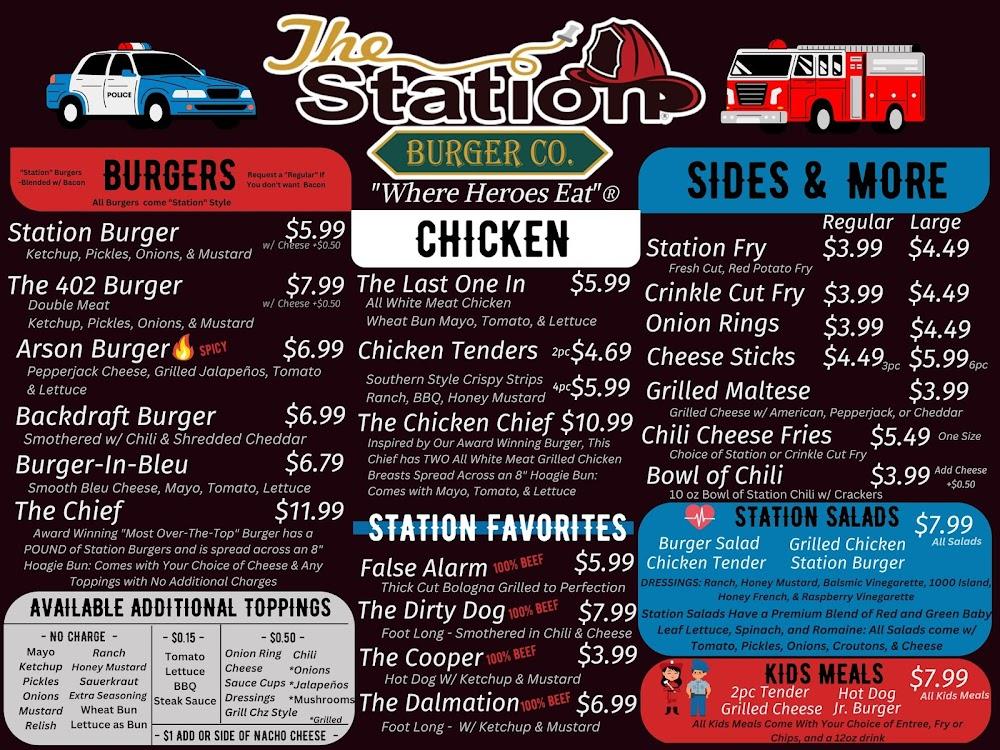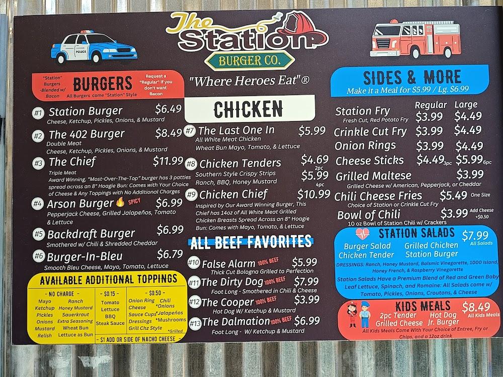 Welcome to The Station Burger CO., where every bite pays tribute to our everyday heroes. Founded by Carl Medlin, a former volunteer firefighter, our burger joint is dedicated to serving delicious, high-quality meals while honoring the brave men and women who protect our community. Located at 5101 Hinkleville Rd in Paducah, KY, we offer a range of mouthwatering burgers and delightful ice cream treats, perfect for any time of day. Enjoy quick service in a welcoming environment, whether you're dining in, taking out, or on the go. Join us and make every meal a celebration of courage!